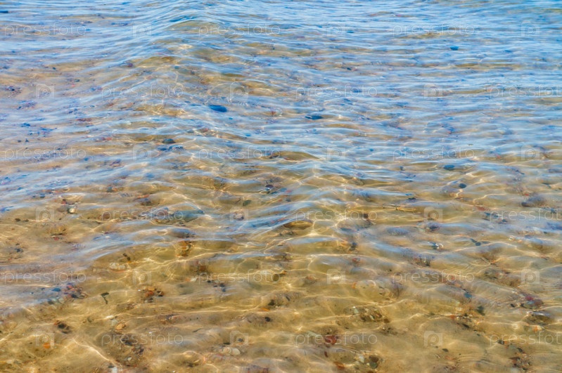 Фон — чистая вода. Вода с желтым оттенком. Дно водоема сквозь воду