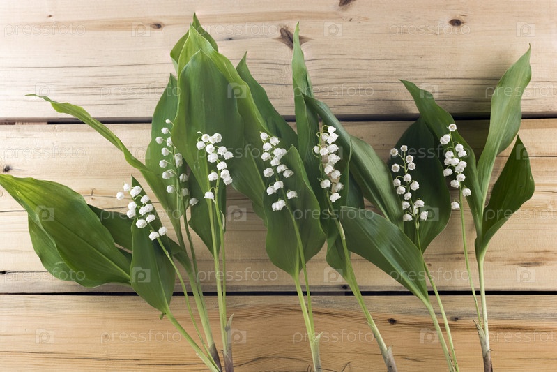 Ландыши на фоне деревянных досок