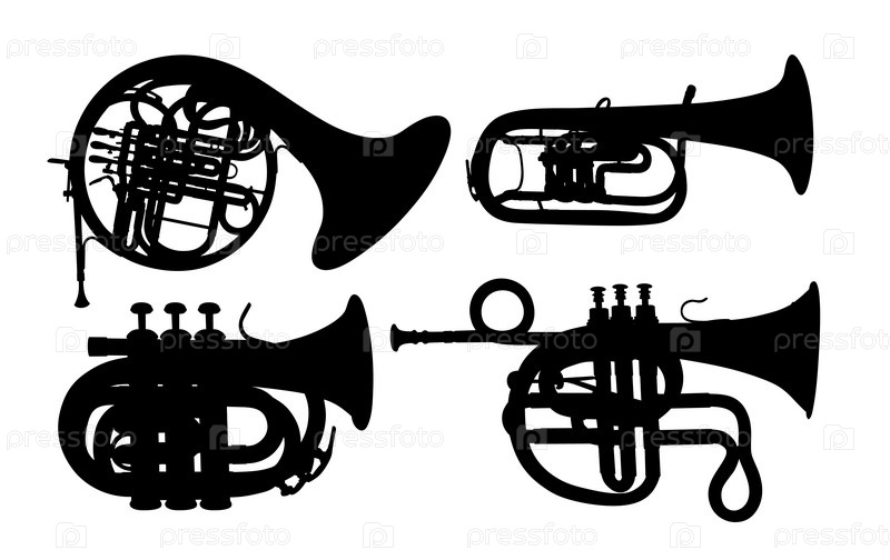 Набор силуэтов духовых музыкальных инструментов