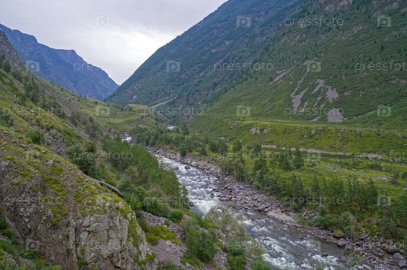 Река Чульча. Горный Алтай, пасмурный день в августе