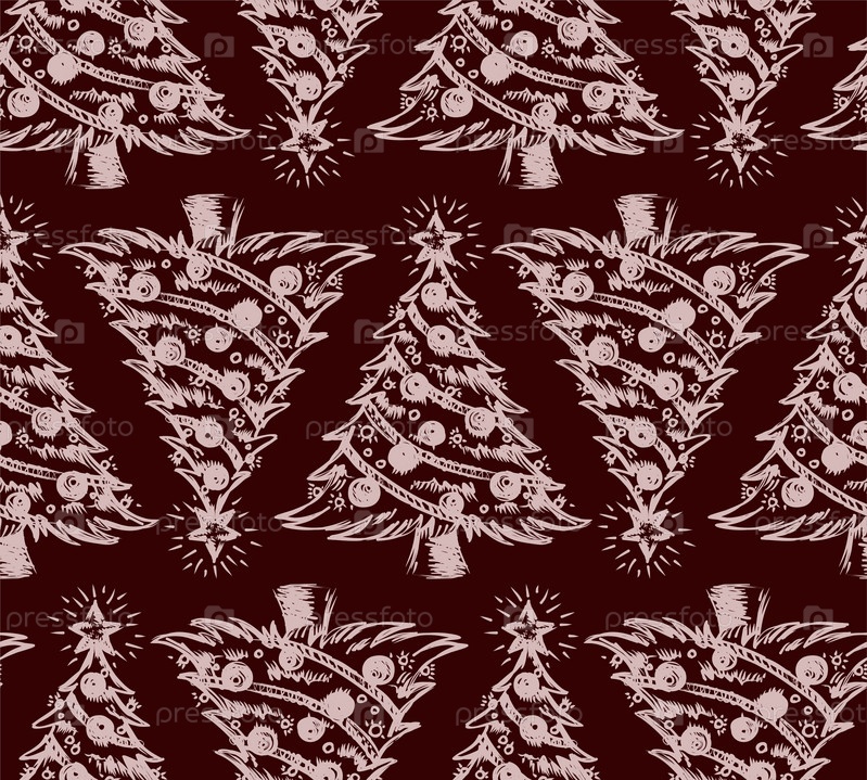 Бесшовный красный фон с рождественской елкой