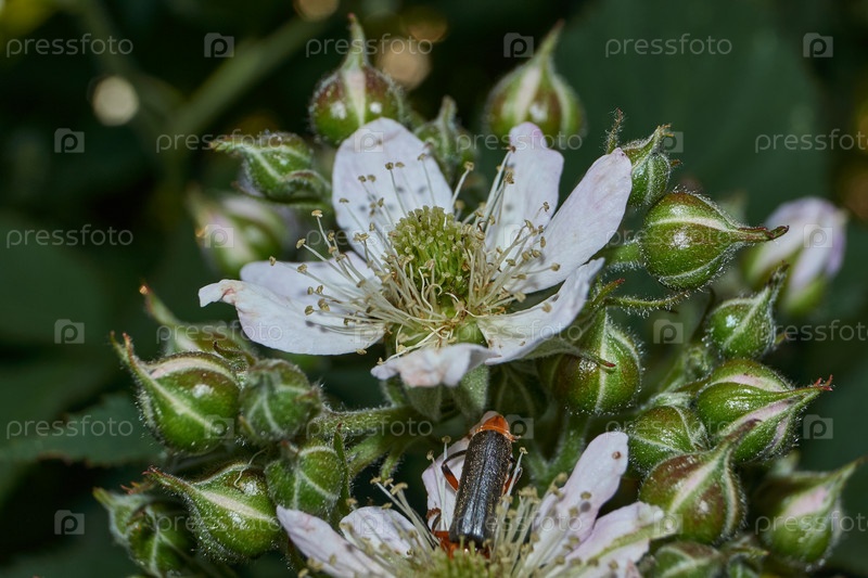 В саду загородного дома цветет ежевика. Лето