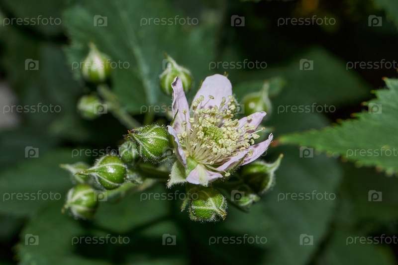 В саду загородного дома цветет ежевика. Лето