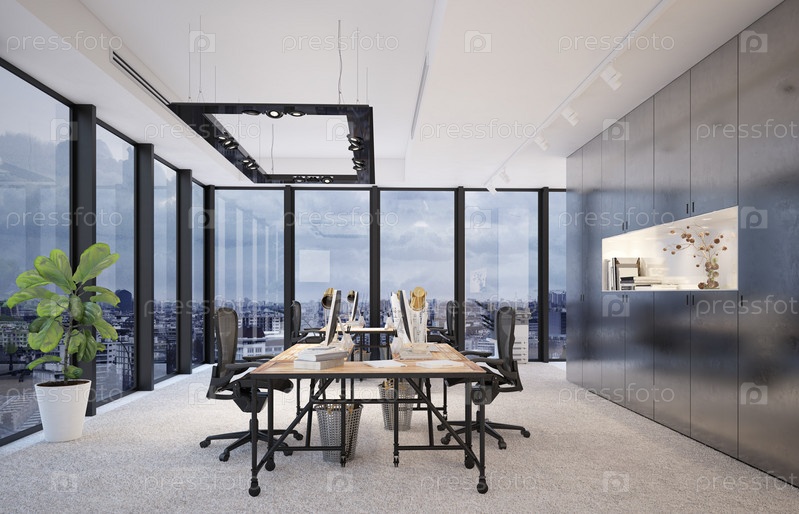Современный офис с панорамным видом на город
