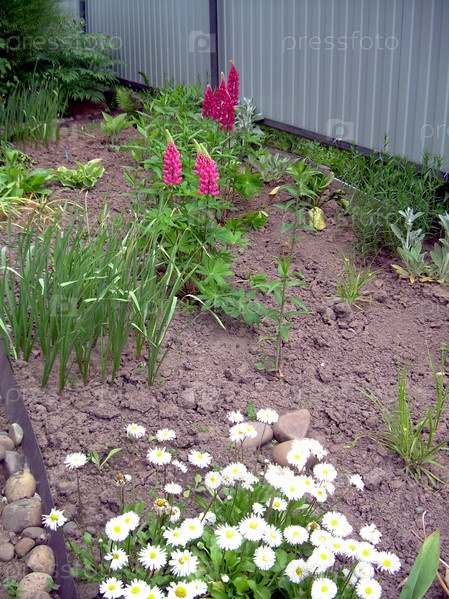 Цветет люпин и маргаритки
