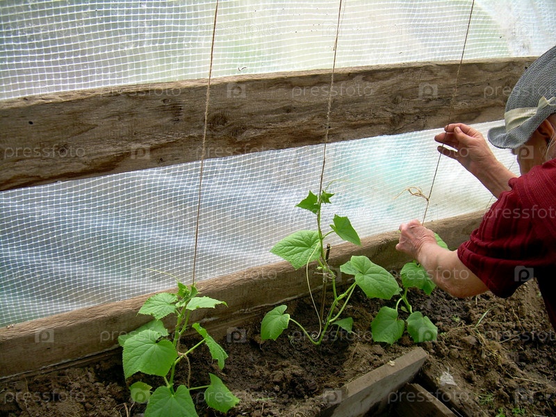 Подвязка высаженной рассады огурцов