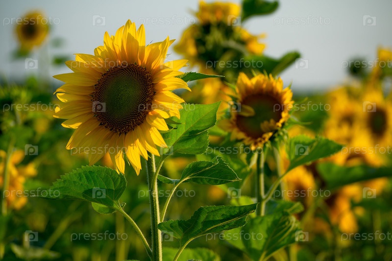 Россия. Алтайский край. Цветущий подсолнечник на бескрайних полях алтайских фермеров близ села Целинное
