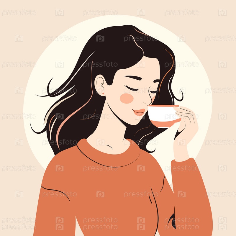 Девушка с длинными волосами пьет кофе