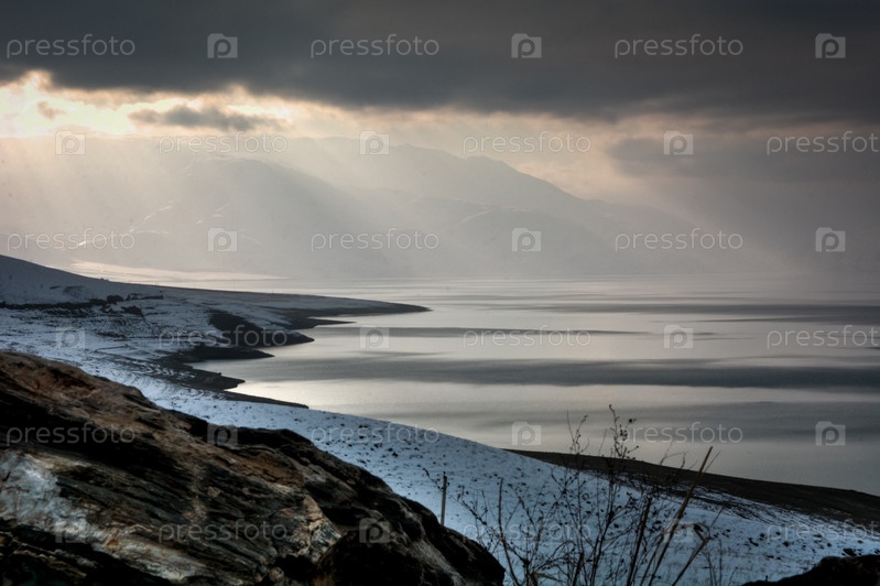 Осенний вид на Токтогульское водохранилище, Киргизия. Шум и зернистость как часть композитинга, Мягкий фокус
