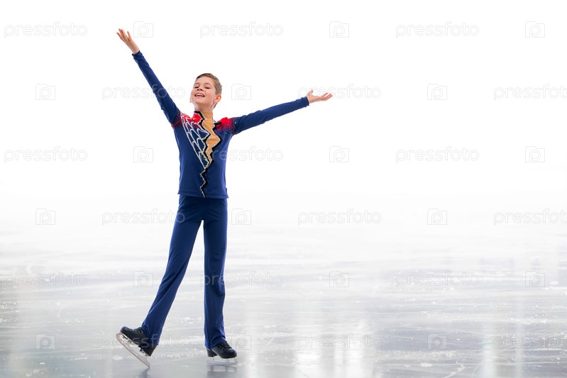 Мальчик-фигурист катается на льду