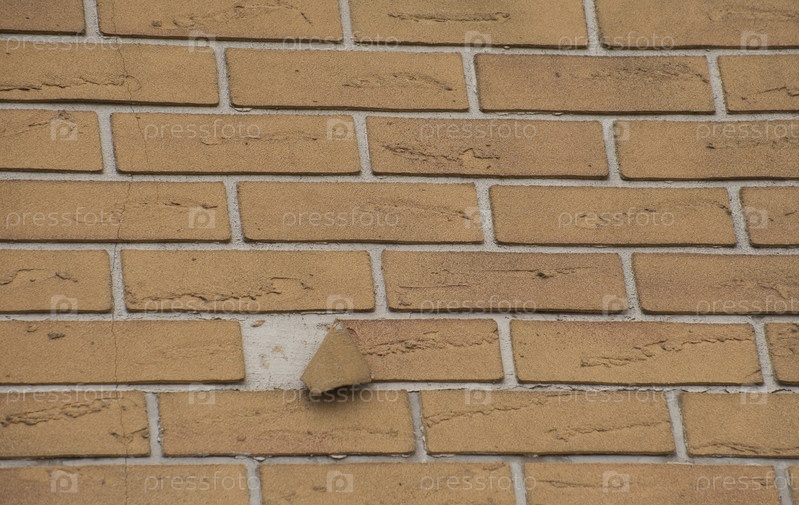 Стена из декоративного кирпича, где один элемент отклеился