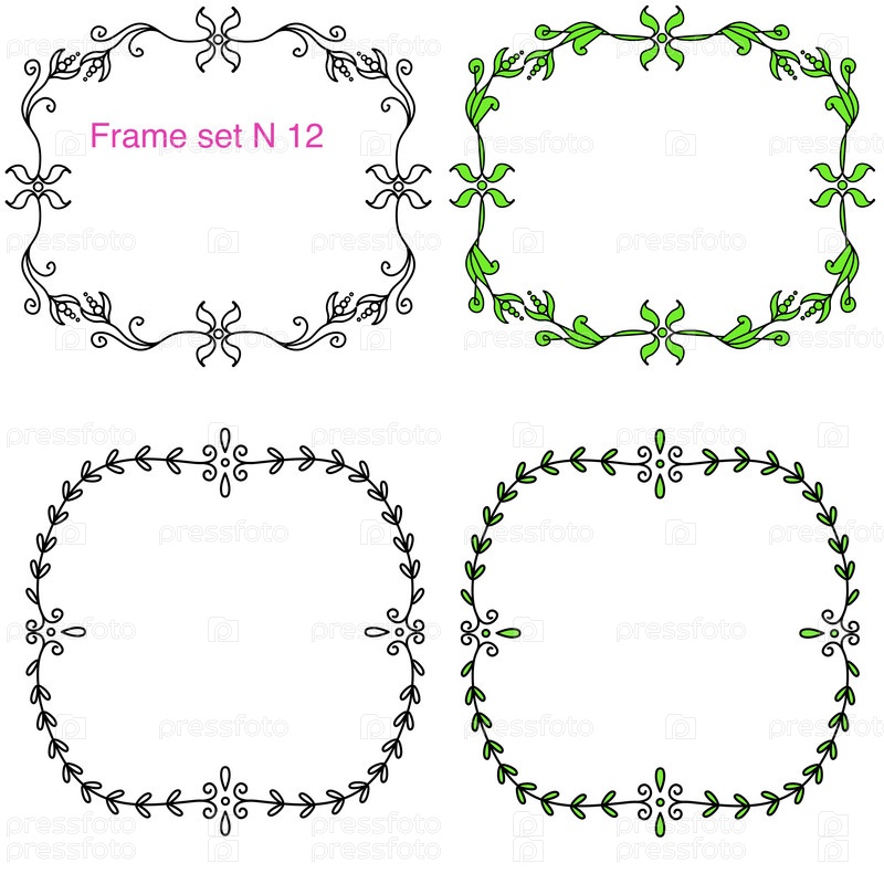 Набор красивых резных рамок растительного орнамента с элементами природы в виде листьев, завитков растущих виноградных лоз, условно ягод