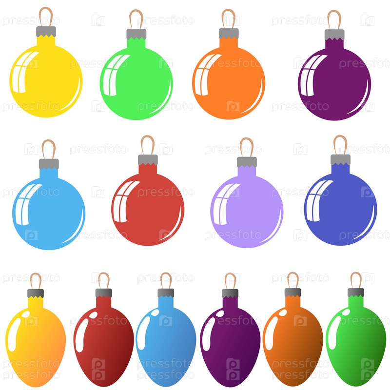 Круглые и овальные елочные игрушки разных цветов