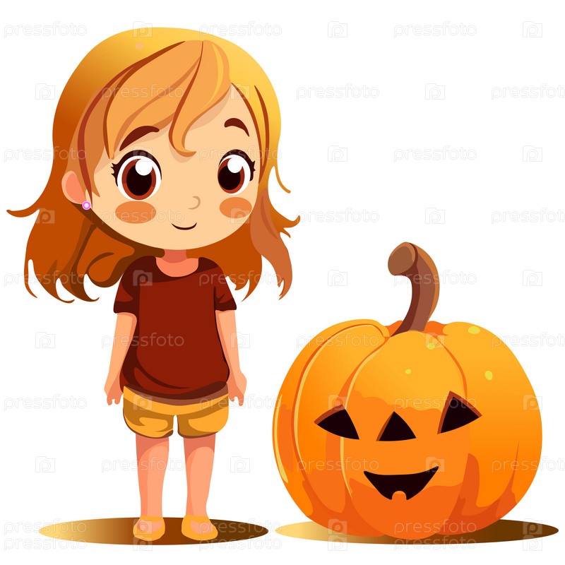 Милая девушка с тыквой-фонарем в стиле Хэллоуина
