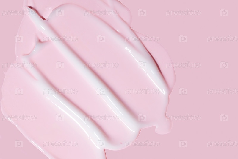 Белая косметическая кремовая текстура. Бальзам красоты, лосьон, фон для ухода за кожей. Мазки крема на розовом фоне