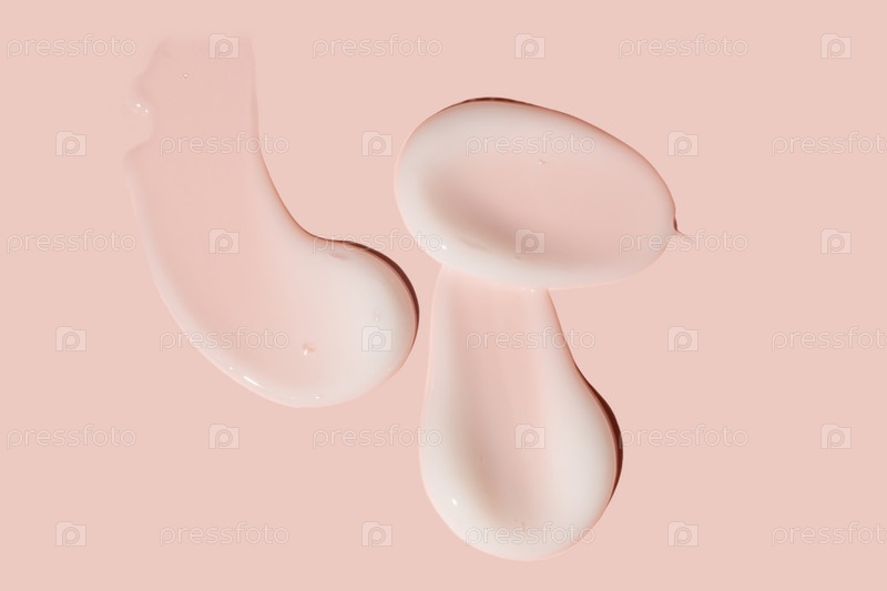 Белый косметический крем для лица или увлажняющий лосьон для тела мазки на пастельно-бежевом фоне. Гигиена, средство по уходу за кожей с кремовой текстурой. Образец мазка крема для лица красоты на цветном фоне