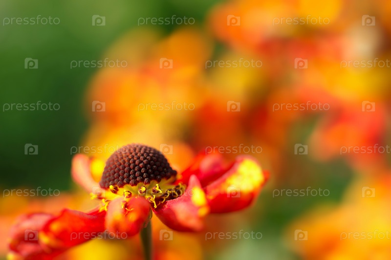 Макрофотография цветущего бутона гелениума с фокусом на коричневой сердцевине