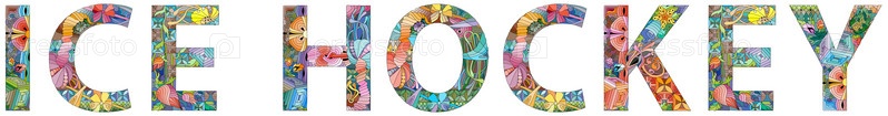 Слова ХОККЕЙ. Векторный зентангл объект для декора