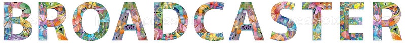 Ручная роспись художественного дизайна.Ручно нарисованная иллюстрация слов BROADCASTER на футболке и других украшениях