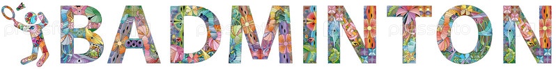 Ручная роспись художественного дизайна.Ручно нарисованная иллюстрация слов BADMINTON с иконой бадминтона для футболок и других украшений