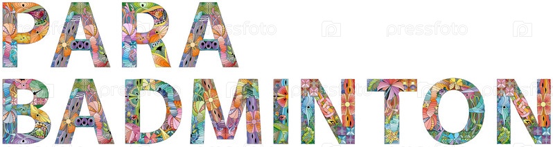 Ручная роспись художественного дизайна.Ручно нарисованные иллюстрации слов Para Badminton для футболок и других украшений