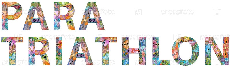 Ручная роспись художественного дизайна.Ручно нарисованные иллюстрации слов Para triathlon для футболок и других украшений