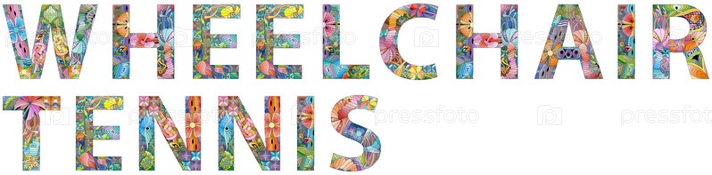 Ручная роспись художественного дизайна.Ручно нарисованные слова иллюстрации WHEELCHAIR TENNIS для футболок и других украшений