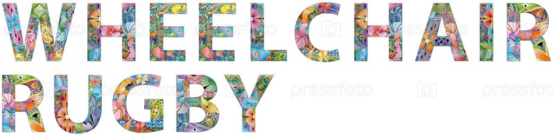 Ручная роспись художественного дизайна.Ручно нарисованные иллюстрации слов WHEELCHAIR RUGBY для футболок и других украшений