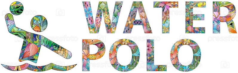 Слова WATER POLO со спортивным значком. векторный декоративный зентал объект для любых целей