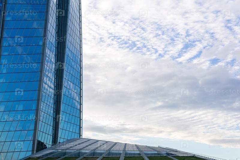 Современная архитектура, элементы фасада современных зданий на фоне неба