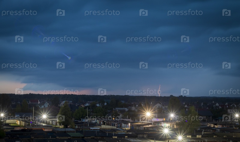 Снимок молнии в ночном небе. Природа