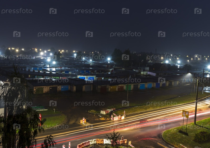 Снимок световых полос на дороге ночного города. Концепция