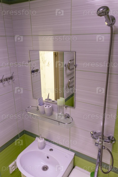 Крупный план ванной комнаты в современной квартире. Дизайн интерьера