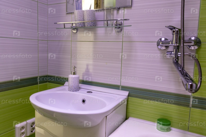 Крупный план ванной комнаты в современной квартире. Дизайн интерьера