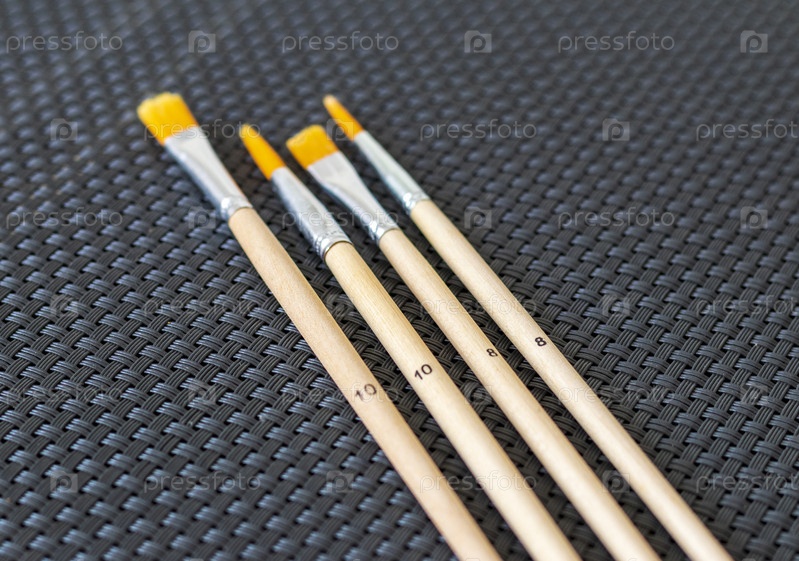 Снимок различных кистей для рисования с маркировкой размеров на них. Искусство и ремесло