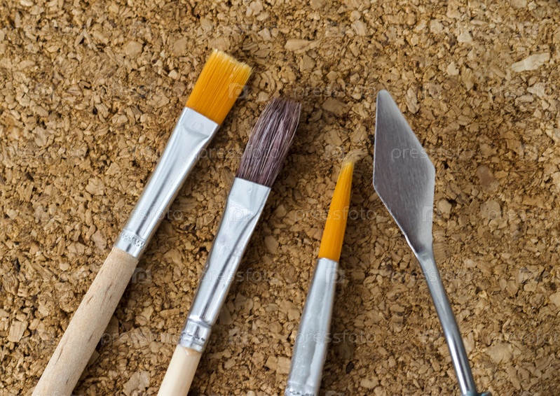 Снимок различных кистей для рисования с маркировкой размеров на них. Искусство и ремесло