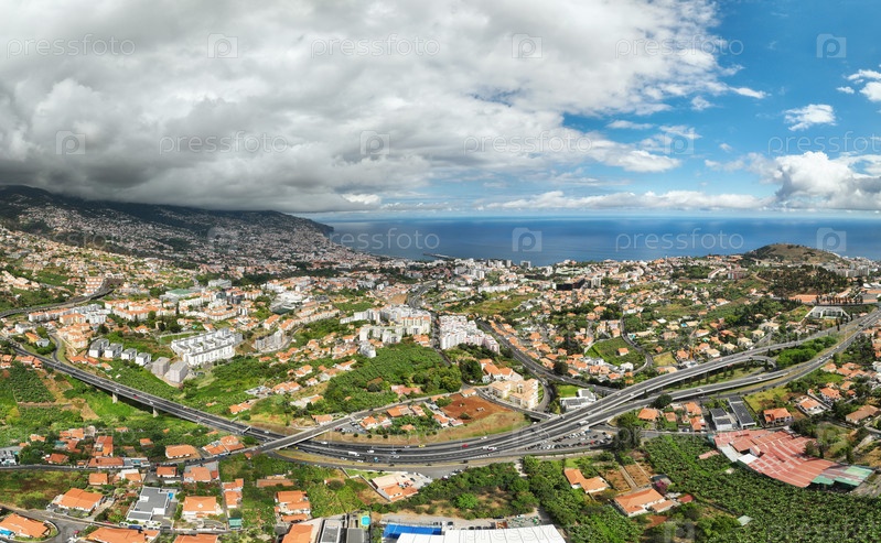 Вид с дрона на город Фуншал, Мадейра, Португалия