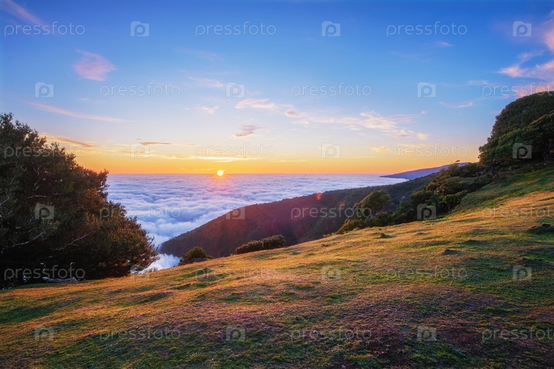 Восход солнца над облаками на острове Мадейра, Португалия