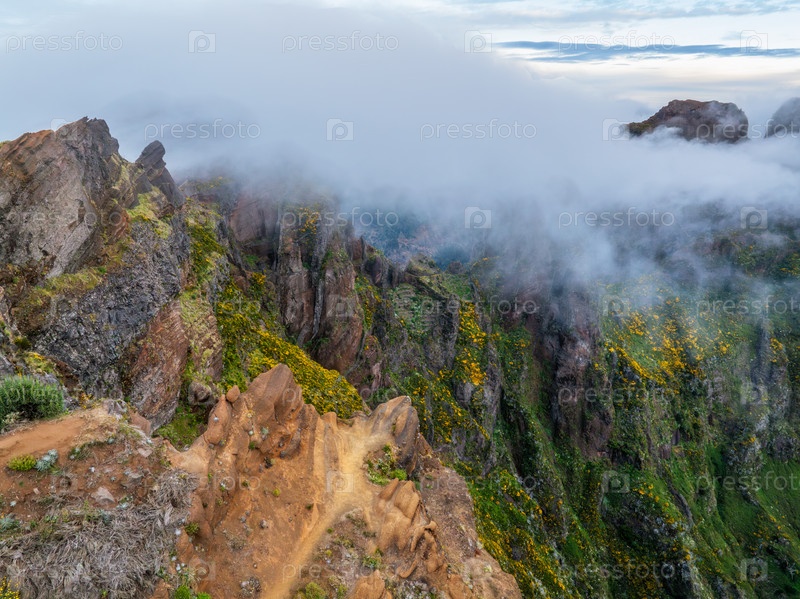 Гора, покрытая туманом и облаками. Рядом с Пику-де-Ариейру, остров Мадейра, Португалия