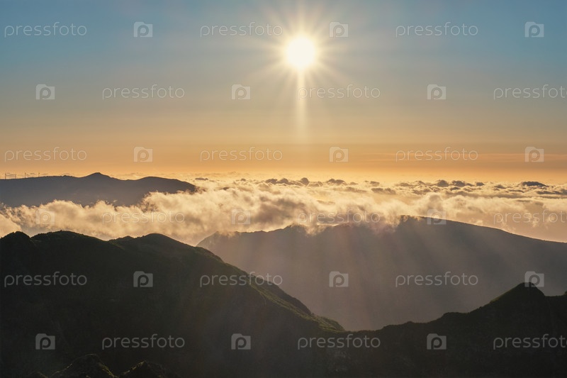 Вид с воздуха на горы возле Пико Руиву, Мадейра, Португалия