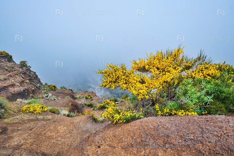 Вид вблизи Пику-ду-Ариейру, Португалия в облаках