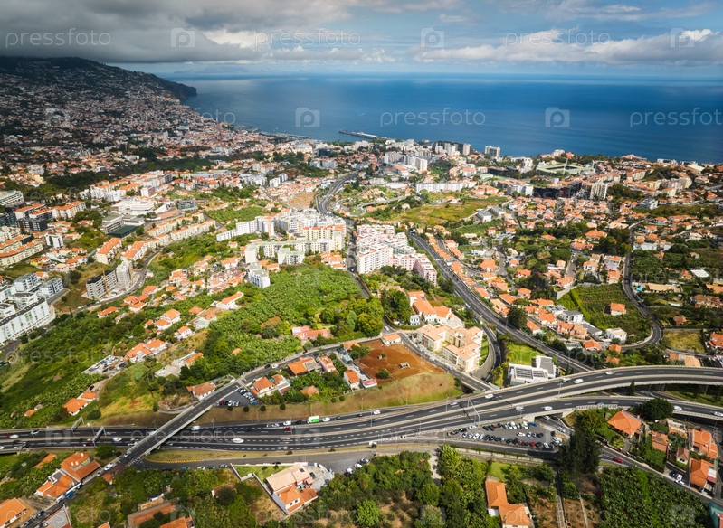 Вид с дрона на город Фуншал, Мадейра, Португалия