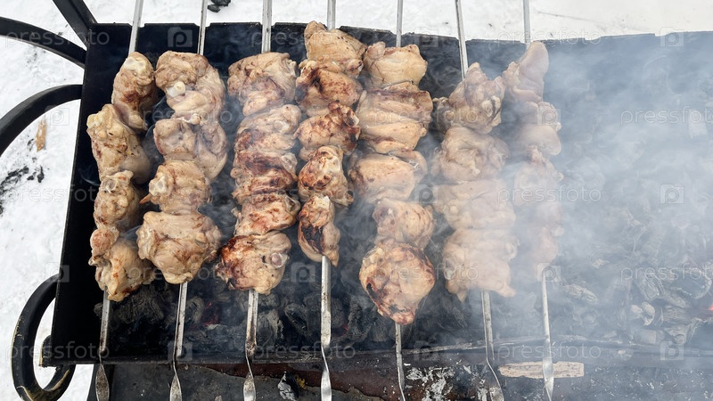 Шашлык из мяса готовится на гриле