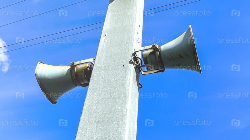 Два больших динамика установлены на столбе