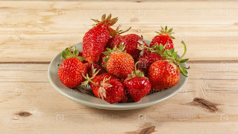 Сочная клубника на зеленом блюдце на деревянной поверхности