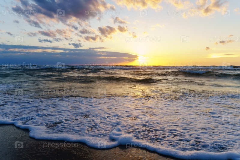 Морской пейзаж на закате. Яркий закат на берегу моря. Закат на Балтийском море
