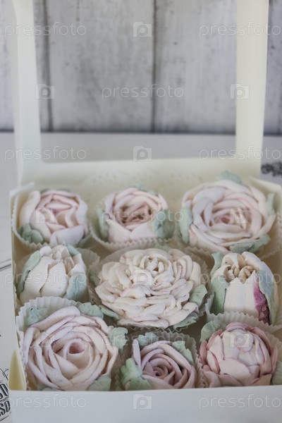 Домашний зефир. Цветы зефира. Крупный план