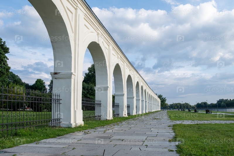 Новгород, Россия - 29 июля 2024 г. Пассаж Ярославова дворища с торговыми рядами