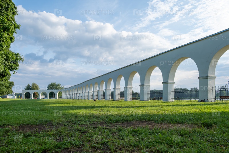 Новгород, Россия - 29 июля 2024 г. Пассаж Ярославова дворища с торговыми рядами