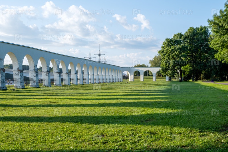 Новгород, Россия - 29 июля 2024 г. Пассаж Ярославова дворища с торговыми рядами